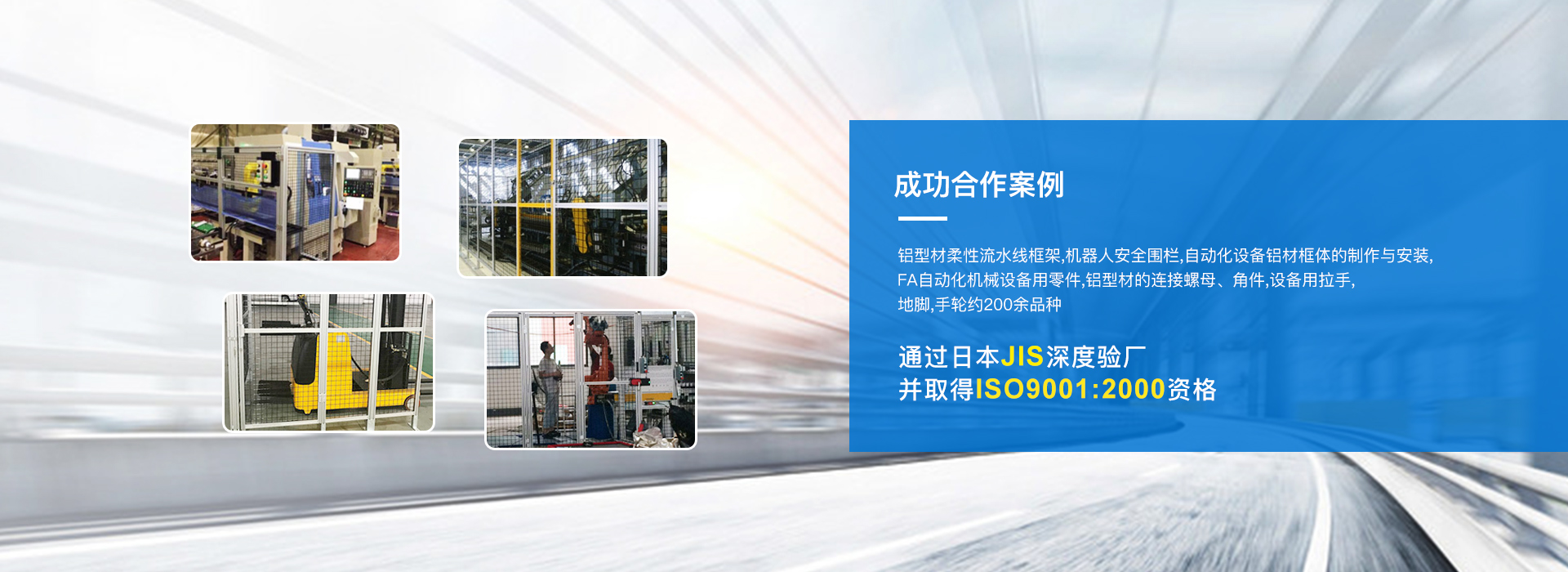 產(chǎn)品品質(zhì)符合日本標(biāo)準(zhǔn),服務(wù)于日資、德資、美資及國(guó)內(nèi)大型自動(dòng)化設(shè)備制造廠(chǎng)商15年 公司主營(yíng):鋁型材柔性流水線(xiàn)框架,機(jī)器人防護(hù)圍欄,自動(dòng)化設(shè)備鋁材框體的制作與安裝 FA自動(dòng)化機(jī)械設(shè)備用零件,鋁型材的鏈接螺母、角件,設(shè)備用拉手,地腳,手輪約200余品種